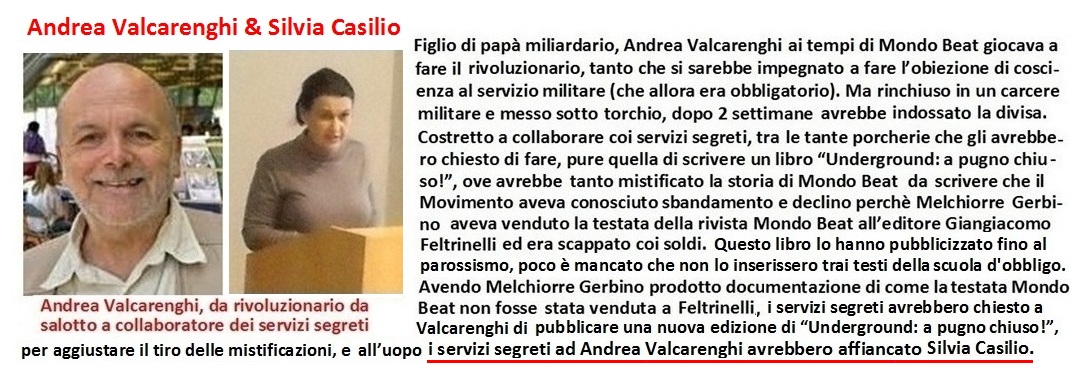Andrea Valcarenghi e Silvia Casilio agli ordini dei servizi segreti per mistificare e disperdere la memoria della storia di Mondo Beat.