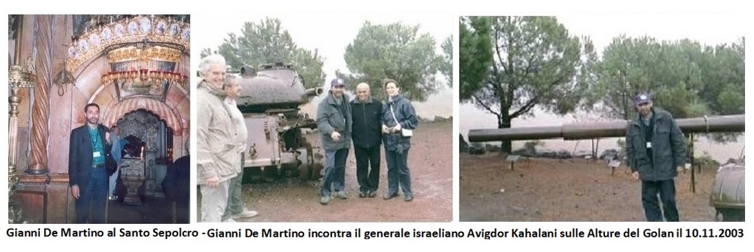 L'agente Gianni de Martino al Santo Sepolcro e sulle Alture del Golan col generale israeliano Avigdor Kahalani il 10.11.2003. Come da Sito ufficiale di Gianni De Martino.