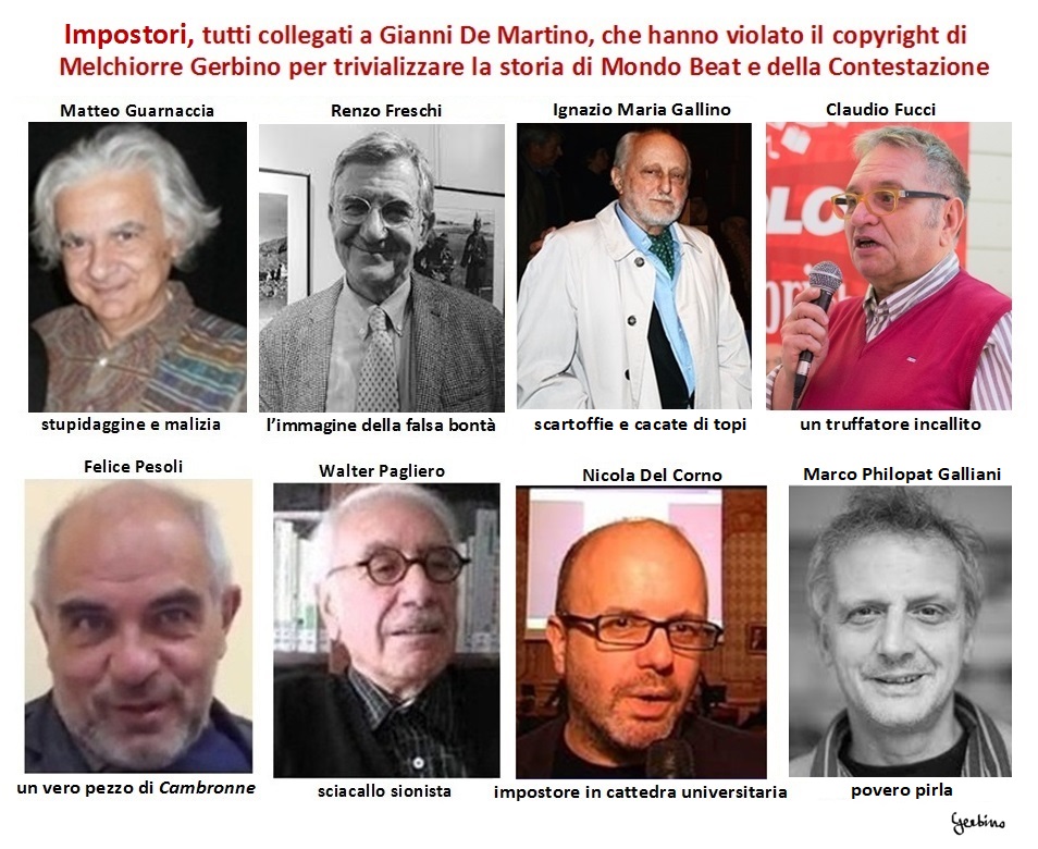 Qui altri impostori, tutti collegati a Gianni De Martino, che hanno violato il copyright di Melchiorre Gerbino per trivializzare la storia di Mondo Beat e della Contestazione